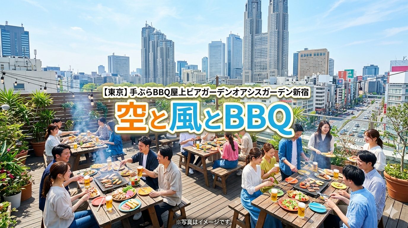 そんな今の気分にぴったりなのが「手ぶらBBQ屋上ビアガーデンオアシスガーデン新宿」です。新大久保エリアという利便性の高い場所にありながら、屋上という開放的な空間で手軽に楽しめるランチコース(3000円~)は、忙しい日常に彩りを添える最高の選択肢です。