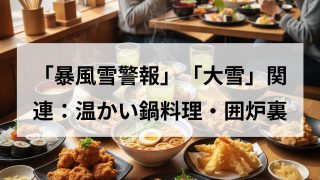 「暴風雪警報」「大雪」関連:温かい鍋料理・囲炉裏