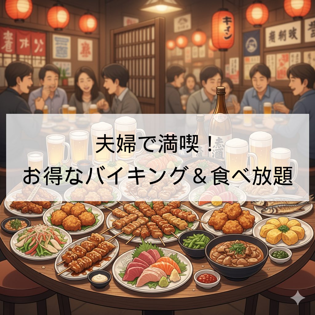 コスパ抜群の食べ放題でありながら、味にも妥協のないこだわりの料理の数々は、日頃の疲れを癒し、二人の会話をさらに弾ませてくれること間違いなしです。気取らない雰囲気の中で、好きなものを好きなだけ味わえる贅沢は、まさに「夫婦の絆を深める」とっておきの時間となるでしょう。